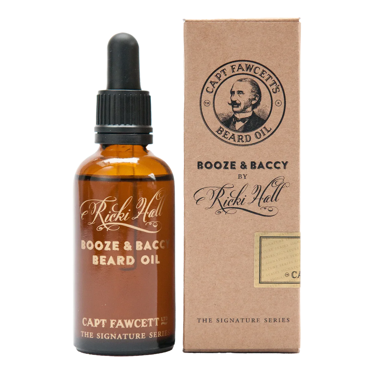 Captain Fawcett har samarbeidet med den verdenskjente dandyen Ricki Hall i produksjonen av denne skjeggoljen. Denne håndlagede skjeggoljen består av en rekke forskjellige velgjørende oljer, og har en behagelig lukt av tobakksblader, eik, vanilje og humle.
