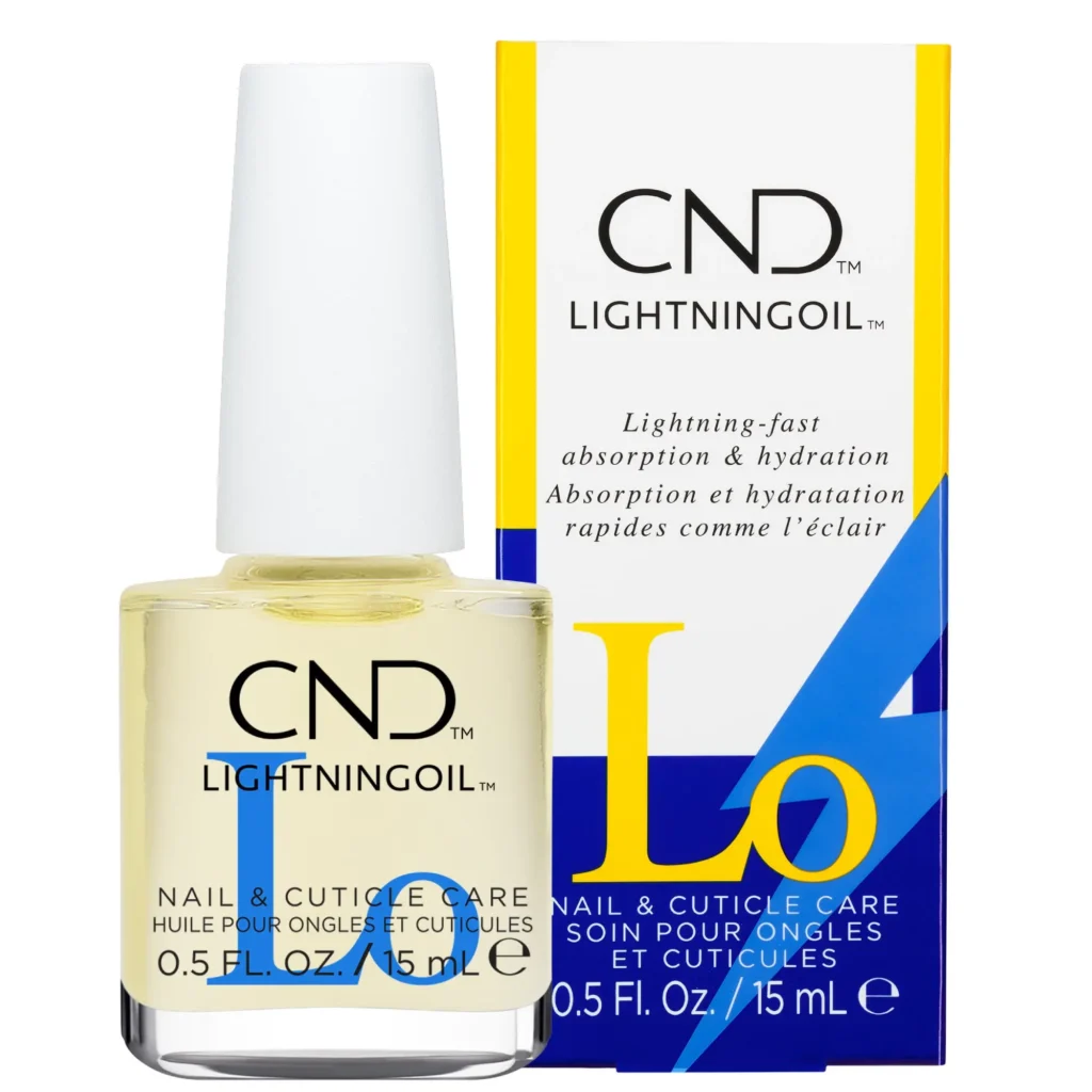 CND LIGHTNINGOIL er utviklet med LIGHTNING-FAST ABSORPTION TECHNOLOGY™, som absorberes øyeblikkelig uten å gå på bekostning av fuktighetstilførselen til negler og neglebånd. Dette gjør den perfekt til bruk i en travel hverdag. De naturlig lette oljene pleier og beskytter både negler og neglebånd, og bidrar til å holde naturlige negler, neglelakk, gelelakk og negleforsterkninger sterke og fleksible.