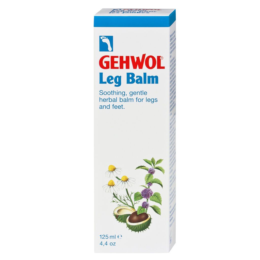 GEHWOL Leg Balm er en pleiende balsam basert på medisinske urter, spesielt beregnet på fotpleie. Allantoin fra hestekastanjer og bisabolol fra kamille, hamamelisekstrakt, mentol og pantenol virker irritasjonshemmende, mildt sammentrekkende og velgjørende ved hudurenheter og rød hud. De verdifulle virkestoffene absorberes hurtig av huden.